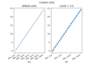 这些示例涵盖了 Matplotlib 中单位的多种表示形式.