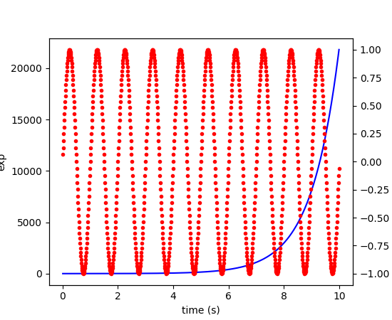 一个常见的请求是为左右 y 轴设置两个刻度,这可以使用 twinx() 实现(目前不支持两个以上的刻度,尽管它在愿望清单上).这效果很好,但是当您尝试以交互方式平移和缩放时,会出现一些怪癖,因为两个刻度都不会收到信号.