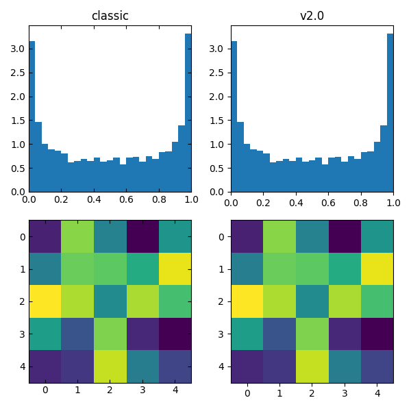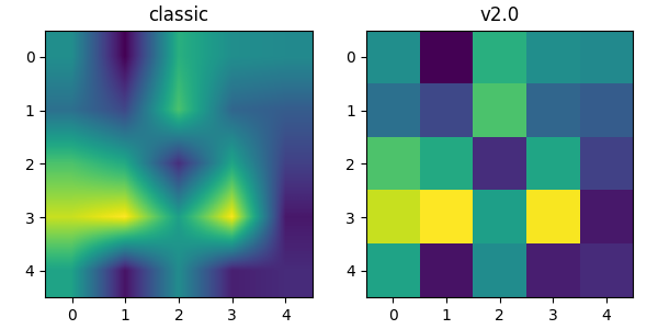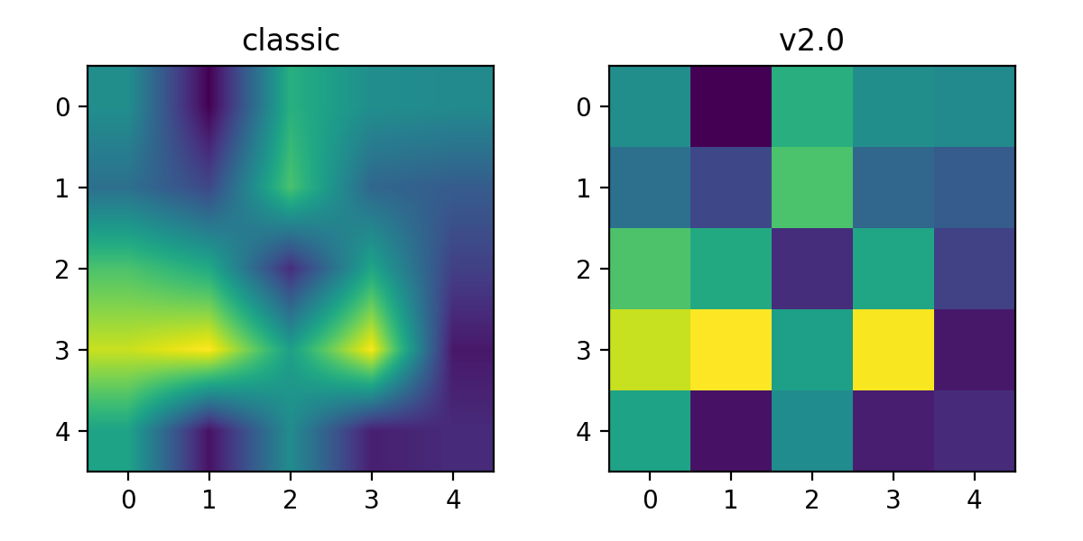 imshow 的默认插值方法现在是 'nearest' ,并且默认情况下,它会在进行颜色映射之前对数据进行重新采样(包括向上和向下采样).