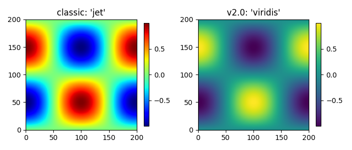 matplotlib.cm.ScalarMappable 实例使用的新默认颜色映射是 'viridis' (又名 option D ).
