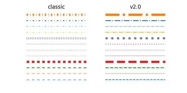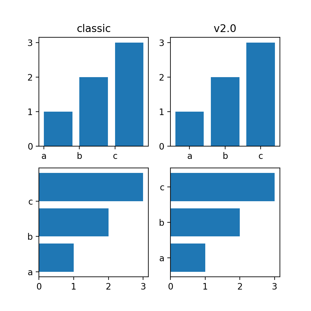 提供了一个"经典"样式表,因此恢复到 1.x 默认值只需一行 python 代码