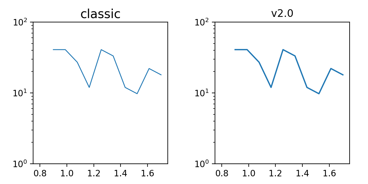 当轴视图限制跨越的范围小于或等于两个主要刻度线之间的间隔时,对数轴上的次要刻度线现在会被标记.有关详细信息,请参见 LogFormatter .当使用 mpl.style.use('classic') 时,次要刻度线标签将被关闭,但无法通过 rcParams 单独控制.