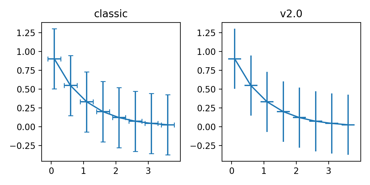 这也改变了 errorbar() 的返回值,因为 'caplines' 列表默认情况下将为空.