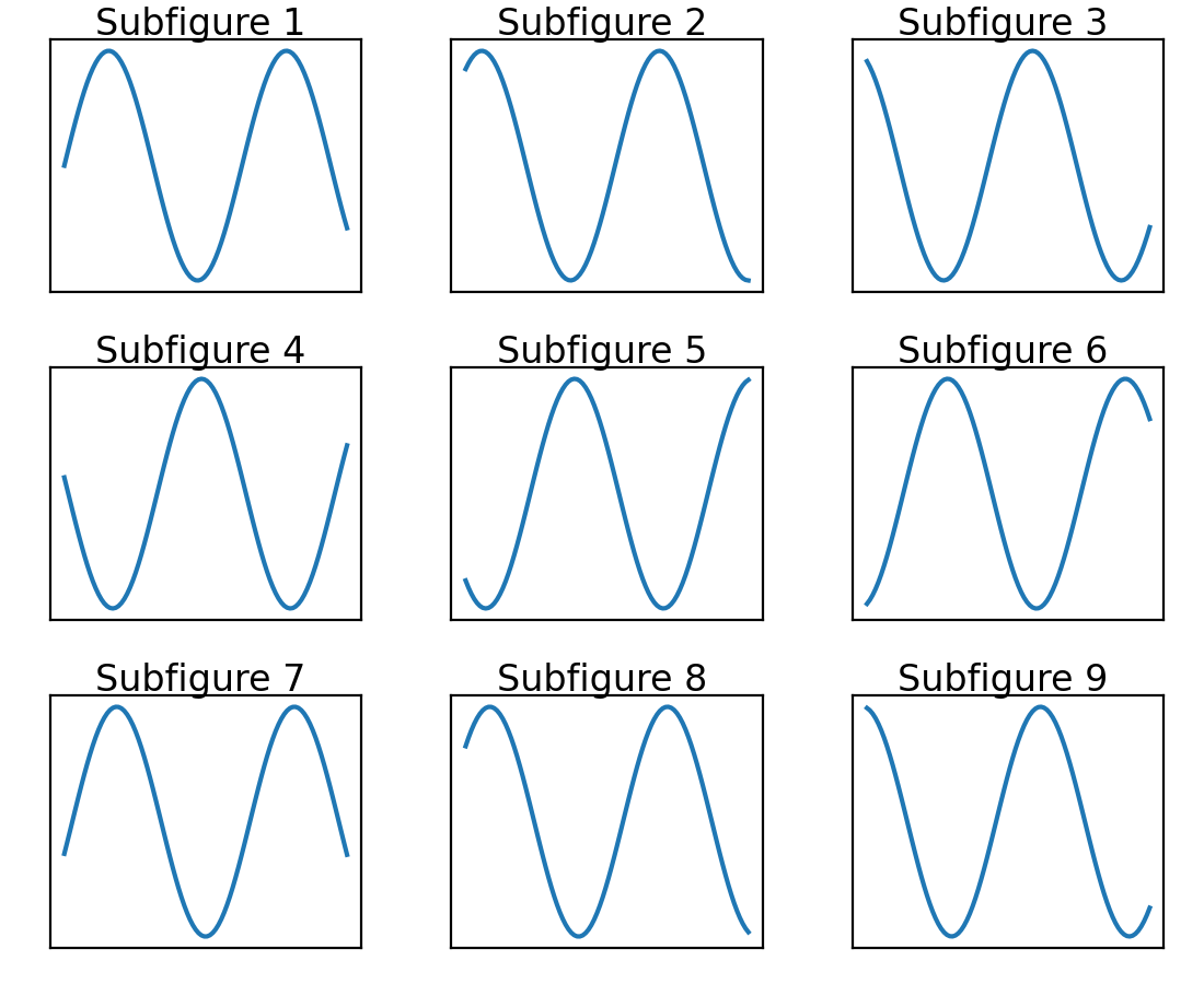 ax.plot(x, np.sin(x + i), label=f'Subfigure {i+1}')