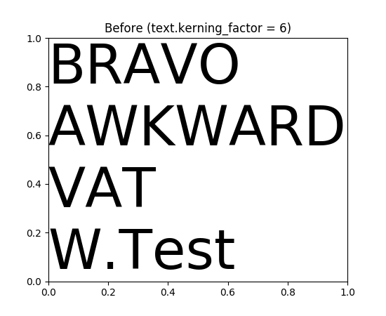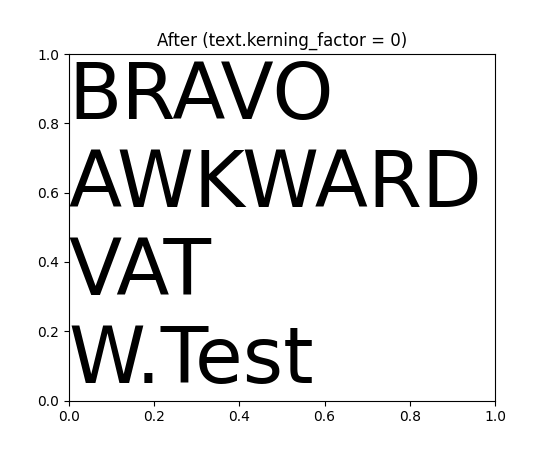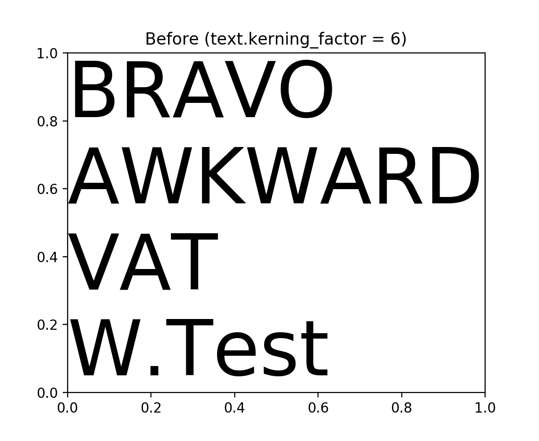由于应用字距调整的方式存在错误,以前版本的Matplotlib会过度修正字距.此版本现在将正确应用字距(对于FreeType支持的字体).要恢复旧的行为(例如,对于测试图像),您可以将 rcParams["text.kerning_factor"] (default: 0) 设置为6(而不是0).其他值具有未定义的行为.