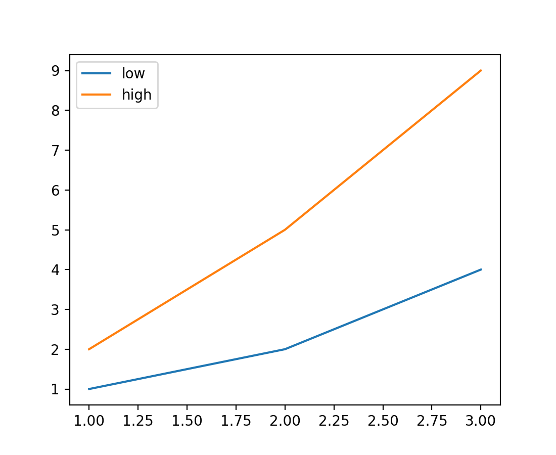 当通过将 2D 数据作为 y 值传递给 plot 来绘制多个数据集时,数据集的标签可以作为列表传递,列表的长度与 y 中的列数匹配.