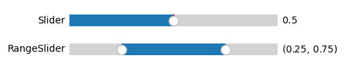 widgets.RangeSlider 允许创建定义范围而不是单个值的滑块.