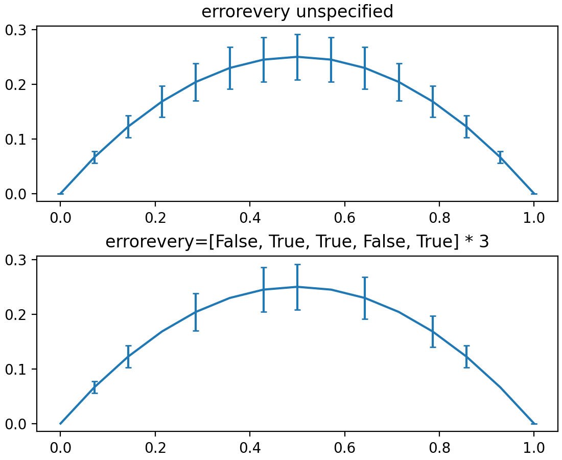 与 plot 的 markevery 参数类似, errorbar 的 errorevery 参数现在接受切片和 NumPy 高级索引(必须与 x 的大小匹配).