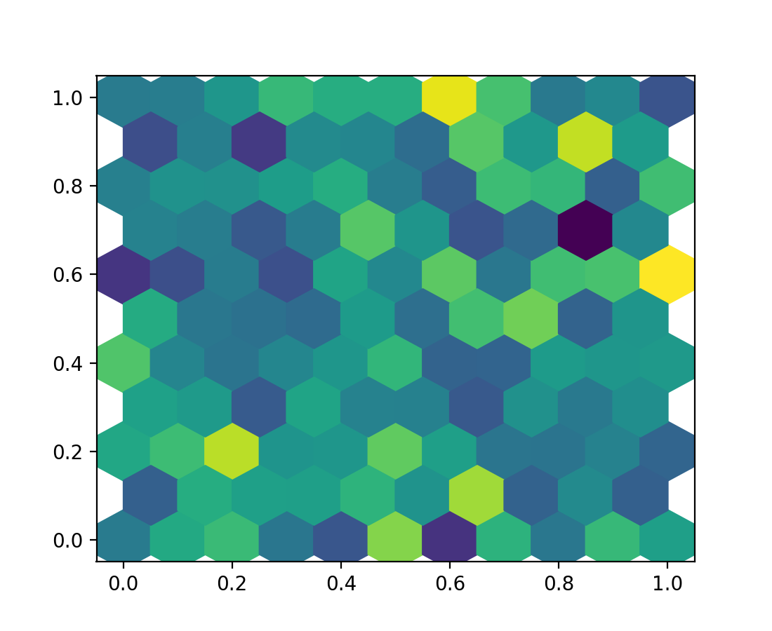 ax.hexbin('a', 'b', C='c', data=data, gridsize=10)